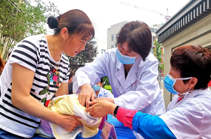 在26日邦泰社区爱心义诊现场,一位年轻妈妈抱着自己的孩子说:“我的娃儿8个月了,经常感觉有热,该加啥子主食”。陈碧林摸着孩子的小脚说:“首先你那个小孩要穿袜子,这个天气还不到光脚的时候”,然后看了看娃娃,“可以加米糊糊了,你的小孩有热容易对抗生素过敏,可以用金银花泡水喝”,然后一番拉家常式问答,表露出一颗慈母心。