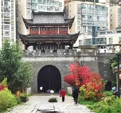 六盘水市水城古镇,位于六盘水市钟山区中心城区,是一个拥有280多年的历史文化古镇。水城占镇始建于清雍正十年(1732年),因古镇四面环水,故取名水城,又叫"荷城"。古镇內河道纵横,有民主桥,光明桥,自由桥等七座桥梁连接古镇通行;古镇内少数民族众多,有苗族,土族,回族,布依族和水族,因而古镇内房屋建筑各具民族特色,现存有许多民族建筑和文化景点,如观音寺,城隍庙,文庙,武庙,书院,东门塔和名人故居等。转过几条小街,来到古镇著名的美食一条街,放眼望去,整条街道两旁摆滿了各式各样的小吃摊,有羊肉粉,牛肉粉,烧烤,串串香,馄饨,水饺,面馆,铁板烧,更有水城古镇名吃:烙锅,外酥内嫩,色香诱人。小吃摊后面是琳琅滿目的店铺,有卖箱包的,卖鞋帽的,卖服装的,也有金店,银店和书店,还有几家挺有格调的酒吧,茶馆和咖啡室。穿过美食一条街,沿着石板铺就的街道漫步,欣赏沿河而建的各具民族风格的古建筑,体验古镇的古风与雅致,感受到了水城古镇历史文化的厚重。 (郑光明)