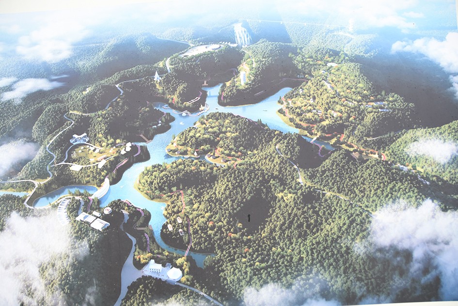 这里的山,悬崖峭壁,鬼斧神工造就;这里的水,碧波荡漾,苍天毫不吝啬的赐予;好山好水好地方,“天生”就是一个农文旅的绝美佳地。“公司经过无数次实地考察,最终选择了这块1000亩的宝地,荣县境内占90%,威远县境内占10%,山巅上那观景台的设置的行政区域中轴线一清二楚。”项目负责人介绍。