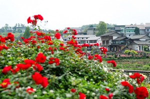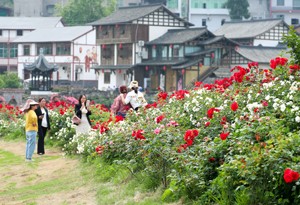 2023年4月27日,四川省华蓥市禄市镇凉水井村生态观光园的特色民宿舒家大院,在玫瑰等鲜花掩映下显得格外温馨祥和。