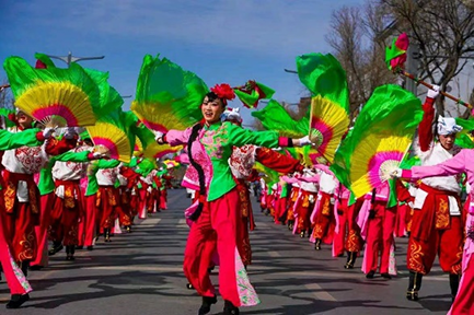 锣鼓秧歌“闹红火”。