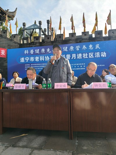 2025年10月28日 由遂宁市老科协主办,市老科协卫生健康分会、船山区老科协、龙凤镇党委政府承办的“科普健康先行·健康营养惠民”遂宁市首个科普月进社区活动在龙凤古镇举行。活动吸引龙凤镇农村群众及社区居民160余人参加。市老科协副会长、市老科协卫生健康分会会长孙先禹,市老科协荣誉理事、市关工委医卫团常务副团长李安成,市科协学会部副部长阳玲、船山区老科协会长钟先亮等12家单位负责人出席,市公共营养师协会名誉会长、市关工委五老宣讲团团长黎砚光主持活动。