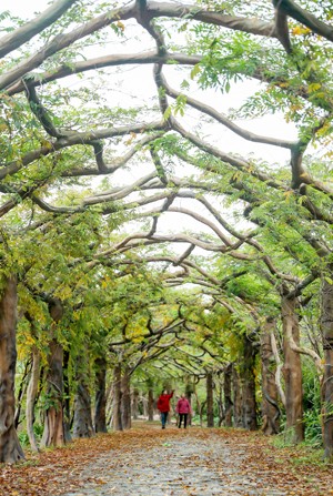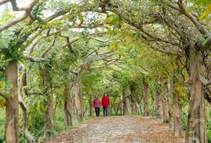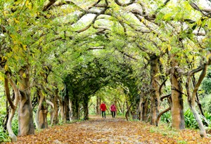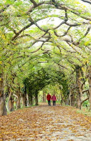 仲冬时节,在四川省华蓥市禄市镇凉水井村的生态园内,开始泛黄、飘落的紫藤叶把“紫藤长廊”点缀得别有一番景致。据悉,该长廊由紫藤和仿生古树桩、仿生滕蔓构成,全长336米,是目前世界上最长的仿生长廊。