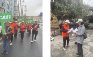 低碳环保,绿色发展。公园城市绿化服务中心退休老党员们干劲十足,他们手举科普展板,手提环保资料,背着花鼓,纷纷走上街头,敲锣打鼓倡导人们节约资源、减少污染。向过往群众介绍植树节的由来,宣传护绿科普知识。呼吁大家增强节约意识、环保意识、生态意识,倡导简约适度、绿色低碳的生活方式。用“红色”力量助力“绿色”发展,吸引了众多居民紧跟护绿环保新时尚步伐。“‘前人种树,后人乘凉’,能够为我们后人做点有意义的事情,为家乡生态建设贡献自己的力量,我感到非常荣幸和自豪。我将带动身边更多人加入“守护绿色生态”志愿行动,共建山清水秀、天蓝地净的美丽四川。”参与环保宣传活动的刘大忠说。89岁抗美援朝老兵唐贤贵说“我的命是战友用生命换来的。只要活一天,就要用实际行动打好环保战,要对得起长眠在异国他乡的战友们。”