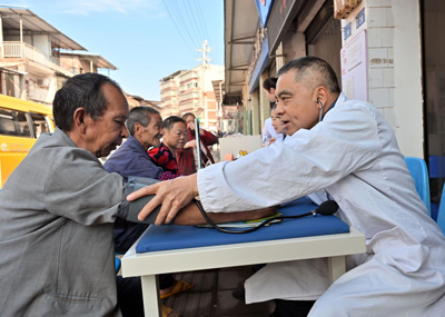 当天是东兴区平坦镇的赶集日。一大早,赶集的人们便从四面八方赶来。“我的血压长期有点低,要注意些啥?”“我经常干咳,又咳不出痰,到底是哪里出了问题哟?”不到八点,临时设置在平坦镇卫生院门诊部的爱心义诊点,早已被前来咨询、就诊的群众围得水泄不通。在义诊现场,区人民医院心血管内科、老年病科、对外联络办的专家、医护人员和区老科协会员总是用爱心、耐心、细心去对待每一个前来咨询的群众,总是不厌其烦地解答着就诊群众提出的各种问题和心中的疑惑。量血压、测血糖、把脉问诊……尽管繁忙,然而有序。他们,用行动将志愿服务的精神与无私奉献的大爱渗透在每一个小小的细节里。