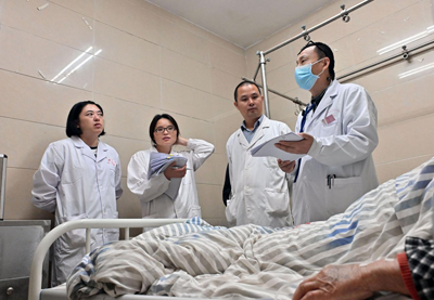 在平坦镇住院病区,东兴区人民医院充分发挥其人才和技术优势,由老年病科主任、主任医师梁远贵带队对各病房进行了全面查房,并针对查房中遇到的问题,及时与平坦镇卫生院的医护人员探讨交流,开展现场教学,不遗余力为基层卫生院的软实力提升加劲加力。