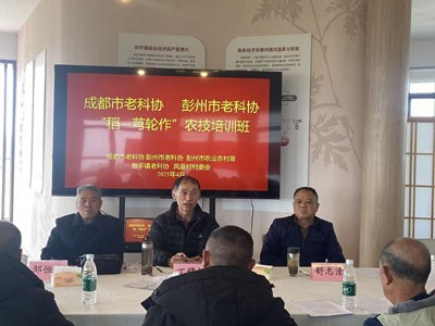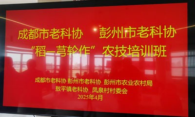 2025年4月3日,根据成都市老科协、彭州市老科协的工作安排,结合敖平镇的2025年水稻、川芎生产实际情况,在市农业农村局和敖平镇政府支持下,彭州市老科学技术工作者协会在敖平镇"川芎公社"(位于敖平镇凤泉村)举办2025年大春农业生产技术培训,重点推广"稻-芎轮作"种植模式。来自“中国川芎之乡”敖平镇凤泉村、兴全村、七星泉村、白塔店村、红岩子社区等11个村(社区)的川芎和粮食种植大户及川芎种植专业合作社、粮食种植专业合作社、家庭农场的从业人员等50余人参训,市老科协副秘书长、农艺师丁穆松,市老科协农业老专家服务团高级农艺师邹恒贵等老专家现场授课指导。