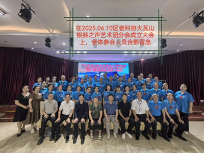 2025年6月10日,金口河区老科协大瓦山银龄之声艺术团分会成立暨第一届会员代表大会第一次会议在市中区新跃山庄礼堂隆重举行。此次会议标志着金口河区老科技工作者协会在文化艺术领域迈出崭新步伐,旨在进一步丰富老年人精神文化生活,发挥老科技工作者在文化建设中的独特作用。