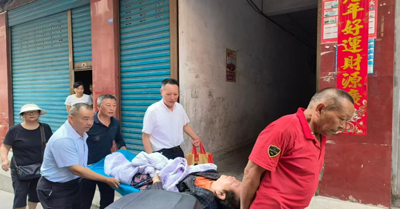 会长何绍志与专家陈宗安在医院协助家属办理出院手续后,亲自陪同曾继秀老人乘坐救护车。途中,陈宗安专家时刻关注老人状态。抵达老人家中后,两人协助家属将老人抬到五楼家中安顿妥当,并为其进行了全面的居家健康检查。
