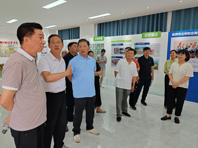 陈剑波会长一行首先考察了自贡立华牧业有限公司展示厅,全面了解该项目的招商引资、工程建设、取得成效等情况:建成存栏种鸡26万套现代化种鸡场和年出雏3500万羽苗鸡孵化中心,实现苗鸡全部就地供应、饲料全部自给自足;建成鸡棚953条、面积88.74万平方米,年出栏肉鸡2800万羽以上,累计实现肉鸡出栏1.24亿羽、销售收入37.2亿元、农户代养收益4.1亿元;建成日处理10万羽肉鸡的初加工及交易中心,肉鸡初加工率达100%,年加工2000万羽的冷鲜禽肉加工基地即将投产。