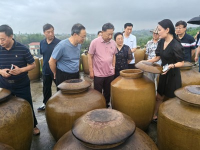 当天上午,炎热的天气转凉,缕缕清风让人心旷神怡。陈剑波一行首先前往位于狮市镇的千天百味贡醋厂,参观了解企业产品生产流程、推动乡村产业振兴、助力村民致富等情况。千天百味晒醋是优选麸皮、大米,拌醅近100味食药同源中草药,经过20余道繁复工序,历时千日方得的好醋,是四川省非物质文化遗产名录。考察中,陈剑波对这一乡村振兴产业发展项目给予了充分肯定,在工作人员的盛情邀请下,大家品尝了千天百味晒醋,酸酸甜甜的味道给来宾们带来了愉悦的口感。