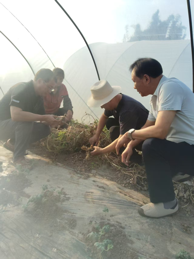 6月28日,泸县老科协福集镇分会会长陈昌荣等老专家一行,深入福集鱼目村4社大棚西瓜种植基地调研,深入西瓜塑料大棚地里,对西瓜种植和西瓜根线虫病发生进行了调查,给富顺县童寺镇代江村来我镇鱼目村投资西瓜的种植大户兰瑞勋进行了技术交流及技术指导,特别是该基地当前发生为害较重的西瓜根线虫病防治问题进行了重点技术交流和技术指导。