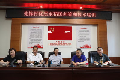 随后,在先锋村村民活动中心会议室举办培训活动,由周明镜教授作主讲。周教授结合田间现场查看的生产情况,对水稻生产中后期田间管理工作提出了四个方面的技术要求。一是在水稻抽穗前5至7天注足水,保证秧苗正常孕穗。二是普施一次钾肥,保证抽穗后颗粒饱满。三是对欠肥水稻田根据实际情况追施氮肥。四是提前预防螟虫、纹枯病、稻飞虱病的发生。会上,向参加培训的30余名干部群众分发了《“天府稻花香”29号品种田间管理技术意见》。