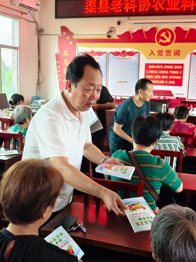 没有高深术语,不搞形式主义。“大家在种、养殖过程中遇到什么问题,尽管提!我们就是来送今天就是来送‘科技礼包’的!”活动一开始,唐定志亲切朴实的话语就拉近了与村民的距离。他不仅介绍了老科协的助农使命,更带来了一份份沉甸甸的“科技礼包”——《渠县科普报》《食品卫生安全手册》、《健康生活集锦》、肥皂等东西,并与随行的县老科协领导和专家一起,逐一发放到参会群众的手中。村民覃国忠捧着资料喜笑颜开:“这些可比网上查的靠谱多了!以后食品安全遇到问题,翻翻书就能找到办法!”