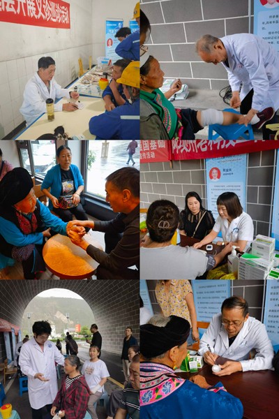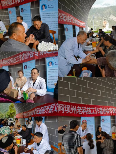 事先得到通知的群众从四面八方赶到活动现场,在茂县土门新纪元电冶有限公司厂区、汶川绵篪镇的大禹广场,老专家们风尘扑扑刚一落座,便被前来求医问诊的群众围拢一起。专家们热情地接待着每一位群众,耐心倾听他们的病情描述、细致检查伤痛部位、为群众搭脉问诊、开具个性化中藏西医药处方。针对群众所患疾病进行现场施治,对患有风湿关节痹症、腰腿肩背酸软疼痛、面瘫、骨质增生的群众施以火罐、针灸、火针、光速穴位治疗、膏药外贴、推拿按摩。对患有感冒、咳发烧、腹胀、胃炎胃痛、前列腺肿、排便不畅、鼻炎、皮肤搔痒等疾病的群众施以对症西药、藏药治疗,还在现场煎制了食药同源的健身安神“调味茶”供群众饮用;对高血压、糖尿病等常见慢性病,逐一进行了血压、血糖检测,并给出用药指导和健康调理建议。