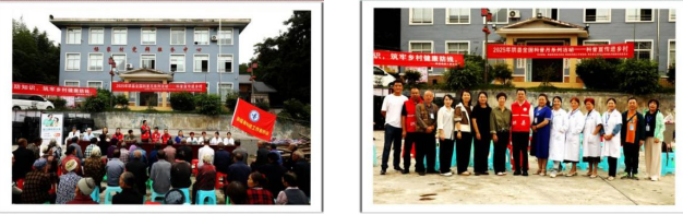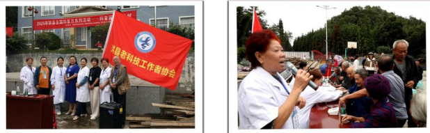 左图:珙县“科普进乡村”活动在珙县玉和苗族乡杨家村党群服务中心广场举行;右图:由珙县科学技术协会牵头,珙县老科技工作者协会等参与的有关专家和工作人员。