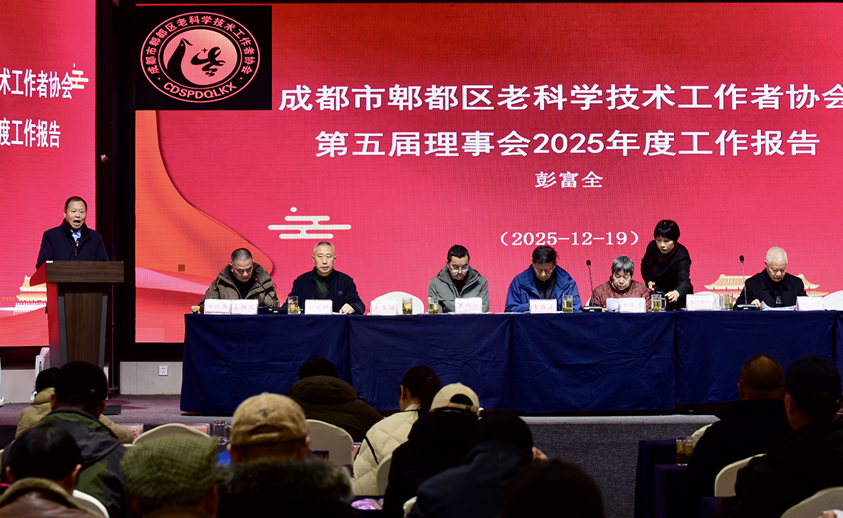 冬日暖阳沐初心,银发聚力启新程。2025年12月19日上午9:30,成都市郫都区老科学技术工作者协会第五届第二次会员代表大会在红星饭店隆重召开。来自全区各领域的老科技工作者代表、友好社会组织代表与特邀领导共120人,齐聚一堂,共商老科协发展大计,彰显银发力量的责任与担当。