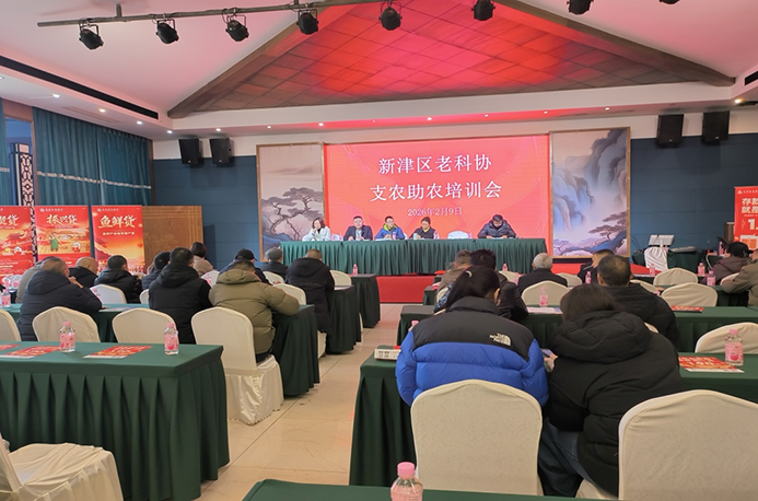 为认真贯彻落实2026年中央一号文件 “锚定农业农村现代化,扎实推进乡村全面振兴” 精神,以实际行动推动我区农业产业发展,2月9日新津区老科协联合新津区水产行业协会开展2026年支农助农专项培训活动。区农业农村局畜牧中心主任张素彬,区老科协副会长陈小良及科技顾问段平、袁小梅,农商银行新津支行副行长陈山,区农业农村局农质科、水产中心同志及全区60多位水产养殖户共计70人参加培训活动。