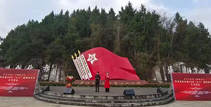 2026年3月6日,佛头山森林公园红军纪念馆前鲜花盛开、晴空朗朗。在平昌县为庆祝第116个“三八”国际妇女节而举办的“聚力兴经济·巾帼献智慧”活动中,作为协办单位的平昌县老科协夕阳红艺术团,以饱满的热情和精湛的技艺,献上了集体舞蹈《幸福中国一起走》。