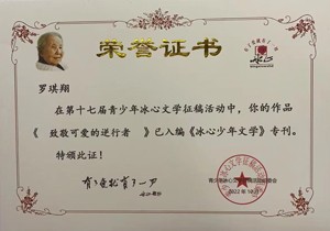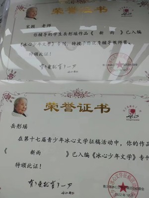 金秋十月,党的二十大召开之际,双流中学初中八年级四班岳彤瑶同学《新雨》作品和双流区立格实验学校2025级4班学生付亦姝同学(原双流区实验小学6年级9班) 《背包里的母爱》作品及双流区双流区棠湖实验学校5年级12班罗琪翔同学《致敬可爱的逆行者》作品入编《冰心少年文学》专刊。其作品还在“中国教育网”和“智慧四川天天播报”“新时代智慧教育网”等网媒发表。三位学生在疫情防控宅家上网课情况下,克服异常天热及地震影响困难,在党的二十大隆重召开的日子里,经过辅导老师指导,用有质量的习作向党的二十大献上了一份厚礼。(张成元)
