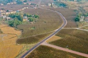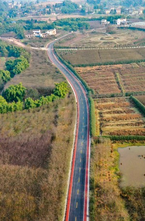 图为2022年12月24日,鸟瞰四川省华蓥市禄市镇凉水井村利用冬闲时节改造升级后的乡村旅游公路。(邱海鹰 摄影报道)