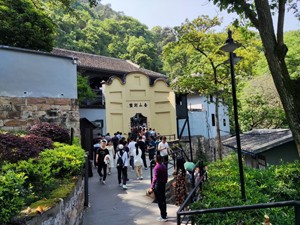 43名盟员来到白公馆、渣滓洞景区的大门口,拿上身份证领取门票进入景区参观学习。