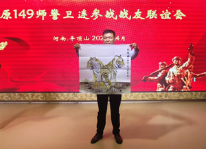 一日战友,终身兄弟!战友情比山高,比海深!张朝军连长终生喜爱书画艺术,退役后在书画领域深耕数十载,尤其擅长虎画,先后师承嘉州画院院长“虎画名家”王朝祥先生,西安美院教授“号称天下第一虎”王喜林先生等多位名师大家,在画坛达到了较深的造诣,现为中国美术家协会河南省分会会员,被尊称为“豫南画虎第一人”。为表达对警卫连战友的深情厚谊,他呕心沥血,耗时半年之久,为连队每位战友都精心创作了一幅“虎画”精品赠送给战友兄弟,留作特别纪念!