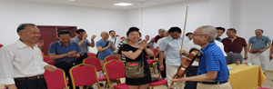 绵阳市老科协专家委员会老专家项守明教授用小提琴演奏了“歌唱祖国”“我爱你中国” “没有共产党就没有新中国”,演奏激扬起了大家的兴致,全体老科技工作者不由自主的起立一起合唱。(绵阳市老科协)