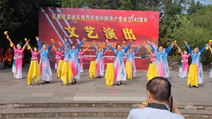 四川省成都市双流区彭镇老龄委组织专人创作歌词,请专业老师配曲编舞的四川清音《我爱彭镇美家园》6月25日亮相双流区关工委、老协会、老体协庆祝建党102周年大型文艺演出舞台。清扬舒缓的音乐,浓浓的乡土气息,唯美飘逸的服饰,莲箫伴舞四川清音的表演形式,令人耳目一新,叹为观止。