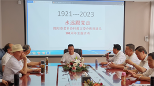 2023年6月29日上午,绵阳市老科协科教文委员会组织全体党员在绵阳市涪城区人力资源服务产业园区会议室,隆重召开了庆祝建党102周年主题党日活动。绵阳市老科协副会长宋万兴、饶志清应邀参加活动。