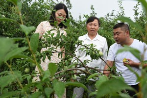 郝大姐口中介绍的独特新品种有两种,青黄色的叫仙桃李,大颗的个头有二两多,比一个鸡蛋还大点点,摘下一颗带着露珠且略带黄色的仙桃李喂入口中,一股乡野的味道扑鼻而来,一口下去,肉多汁多甜甜的,一定会让你品出夏天特有的味道。
