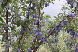 那紫色、谈红色的李子,被果园管理员称为“夫妻树”,其真实名字像圣女一般“蒙娜丽莎”。结淡红色李子的树是“公”树,主要职责负责授粉但也挂少量的果;结紫色李子的树是“母”树,其职责就是负责生产。镜头下,那一串串挂在树上像牛奶子的“蒙娜丽莎”,不仅吸天地之灵气,还吸“大草原”的味道,你慢慢品了就知道她与众不同的滋味。