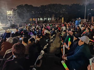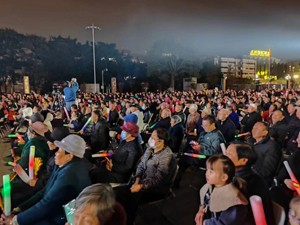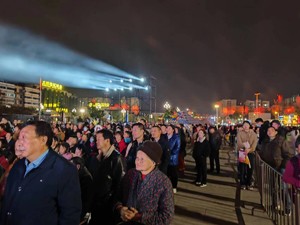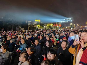 双流广场数千人汇集观看到了精彩节目,尖叫声和撑声不断响起,荧光棒亮光划过整个广场。